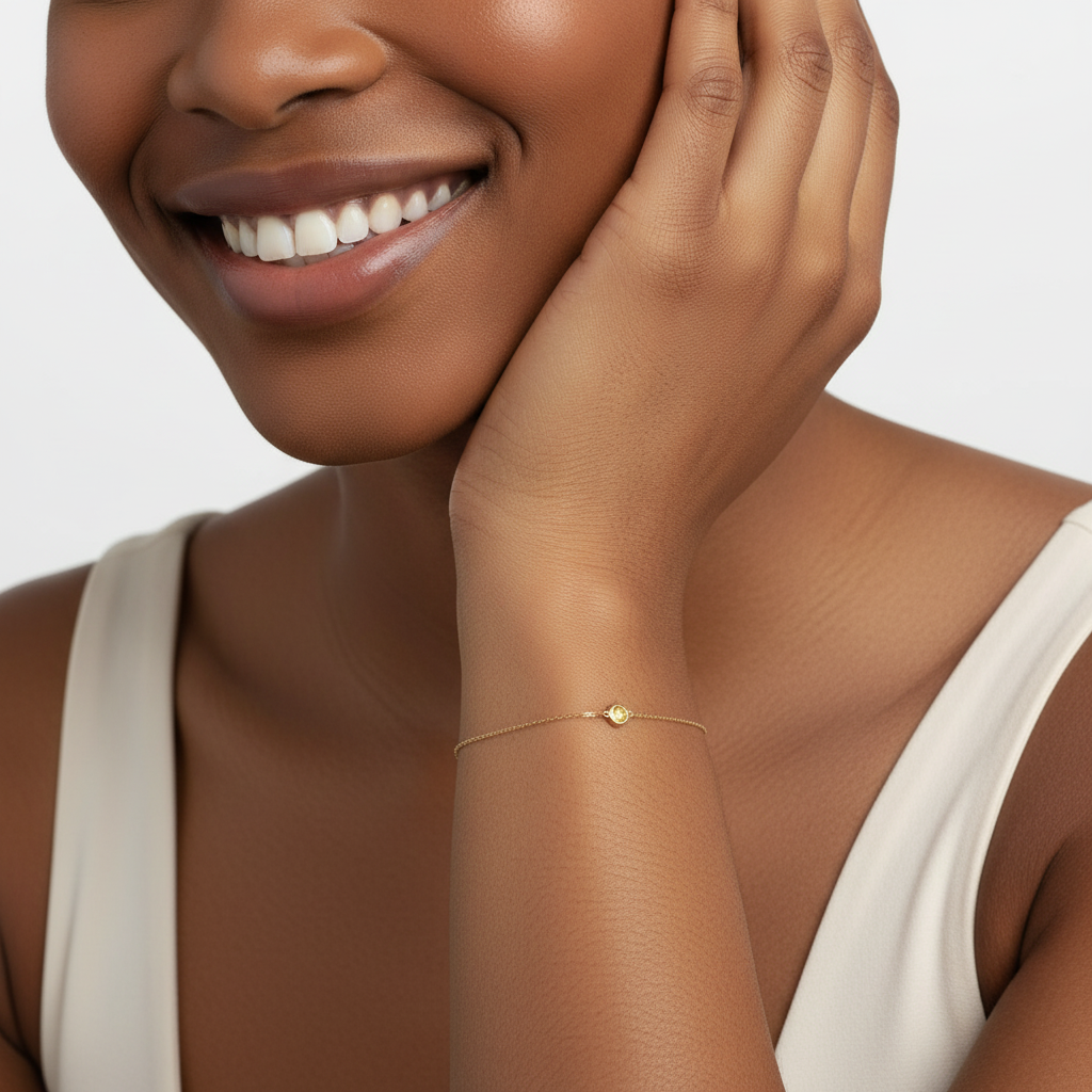 Materials & Details: 14-karat solid yellow or white gold Handcrafted in San Francisco * 7 inch chain adjustable to 6 inches * Natural Yellow Sapphire gemstone * Includes velvet pouch and CHAKRA intention card.